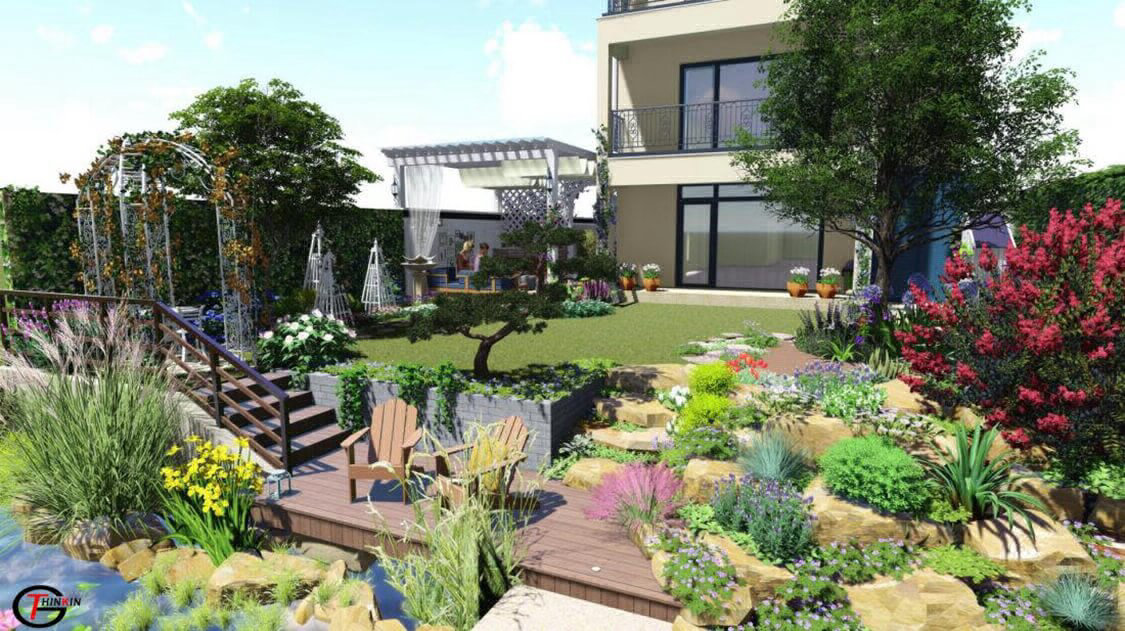 田園風庭院設計脫離奢華和富麗,給人一種清新淡雅的感覺。清晨在鳥兒婉轉鳴叫中醒來,攜手來到別墅庭院水系邊,靜靜的坐著,看著太陽從地平線那邊緩緩照射過來,溫暖而不刺眼。
